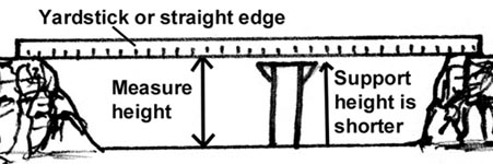 Then measure the height from the floor of the canyon to the yardstick. This will probably be some odd measurement. You will want your support to be slightly shorter than that height. What we will do is add a foam block under the support to make up the odd height difference. |