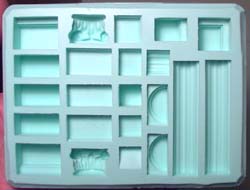 1. | Start by using the extra blocks from the Roman Temple mold (above). You may have to cast it a few more times to get enough sloped and flat blocks. You will have to sand pieces of the top decorative trim at an angle to meet at the peak. |