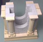 6. | Depending on how you scraped your blocks in the mold, the height of the archway may differ slightly from the pillars. Most likely the arch will be a little tall. To check this, place a pillar (with the base and capital) next to the arch. If the arch is too tall, sand the bottom and top until it's the correct height. |