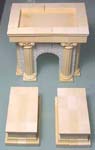 10. | The temple goes together something like this. Don't glue it together until you paint the pieces first. For instructions on painting the model, refer to the Painting Instructions page. I used shades of gray for this model, but made them much lighter than I did for the Wizard's tower. The lightest shade of paint (for the final dry-brushing) is straight white. |