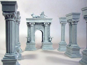 13. | Here's an example of a single pillar, a double pillar, and how they can be used with the arch. The figures on the arch are 25mm scale. |