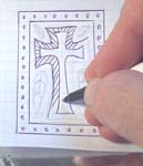 | 1. | Making your own designs is fairly easy. I suggest using 1/4" graph paper to draw it on, so it will be the right size to fit with the blocks. Draw your design in pencil. Pencil works the best because you can erase your mistakes, and you can see what you've already traced over in ink pen. |