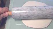 | 3. | Use the piece of pipe to roll out the modeling clay. The CD's are used as a guide to keep the top nice and even. You can also use a rolling pin for this, but wash it off good after you use it. The modeling clay has an oily residue that's kind of hard to get off. Polymer clay works just as good as modeling clay and it's a little cleaner. |