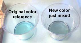 Here's where I compared my new color to the test color. The cup on the left was from the test piece. The cup on the right is the color we're mixing up now.