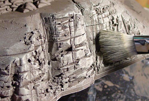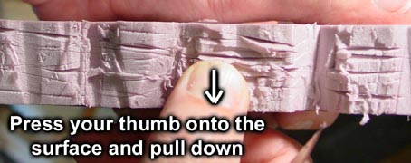 5. | On the front face of the rock, try to add smaller vertical grooves by cutting the foam. This will pull out many of the foam slivers that are stuck. |