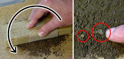 2. | Sprinkle about a 1/4 cup of dirt onto a sheet of sandpaper. Then take a strip from a separate sheet of sandpaper and wrap it around the block of wood. If you don't have a block of wood, anything hard and flat will work. |