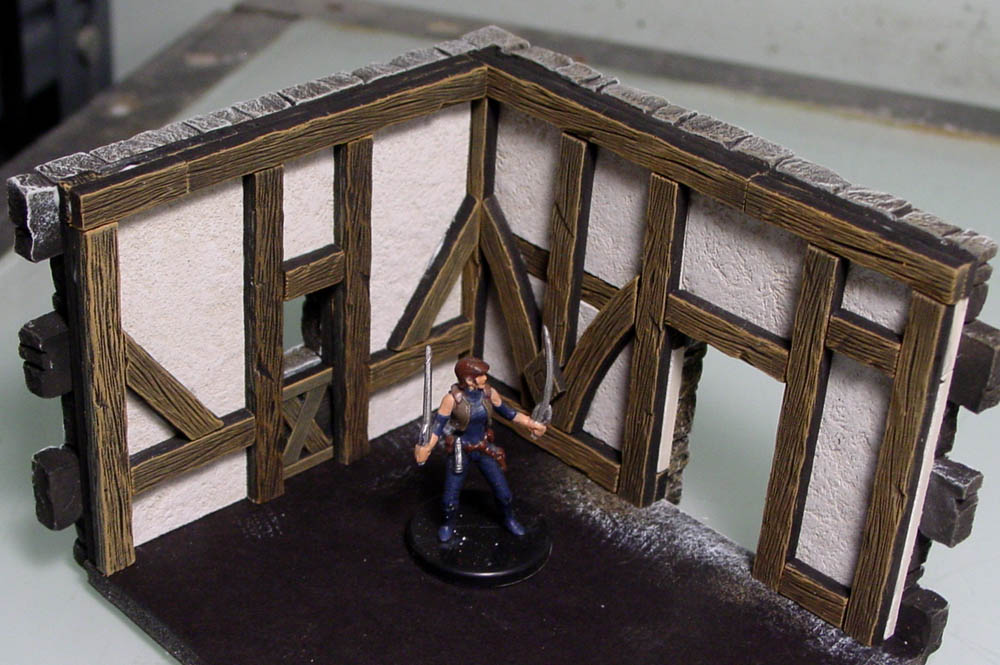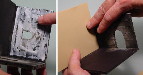 | 5. | After the foam is trimmed up, you can just leave it like this. However, I'm going to add some planks to the sides of the walls. The planks shown here are from mold #225. These come in standard lengths and sizes. I have pre-painted them and instructions for painting them are shown further down on this page. |