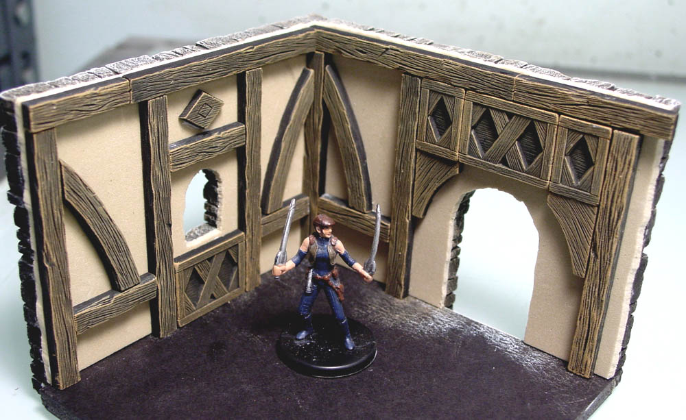 | 7. | Method 4 - Use panel and timber moldsThe stucco panels shown here are cast from mold #251 and the planks shown here are from mold #225 I have pre-painted these so they are ready to glue onto the inside of the wall. The painting instructions can be found further down on this page. |