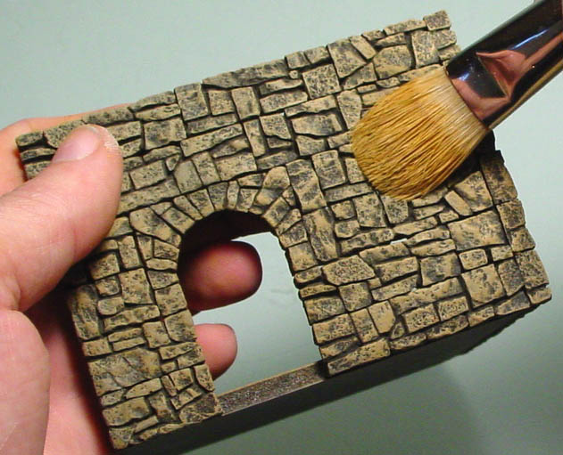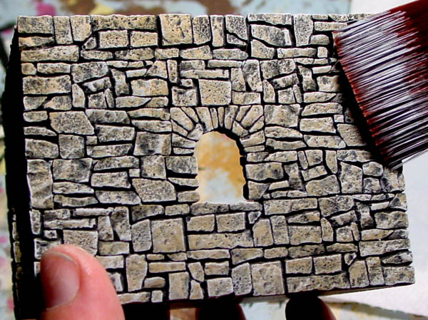 | 3. | The last coat of paint is castle gray light color from the Castle Gray Painting Instructions page. Dry brush this on lightly. This color will highlight the edges of the stone in gray. It will also gray out the brown a bit. After the brush runs a bit dry, you can go a little more heavily but keep it lighter than when you were applying the brown. Click on the photo for a larger view. |