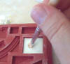 | 3. | Tape a straight edge against the wall plan. Now place the decorative top edging against it. You will have to trim down one of the decorative edge pieces to fit. On the arches, be sure to use the squares with the raised design here, not the recessed design. |