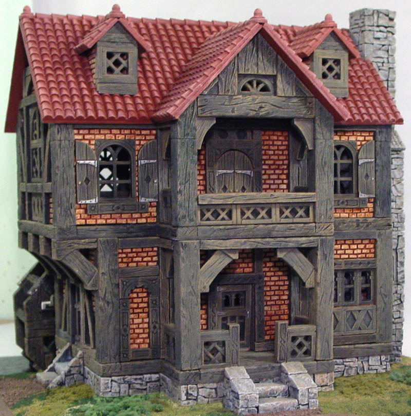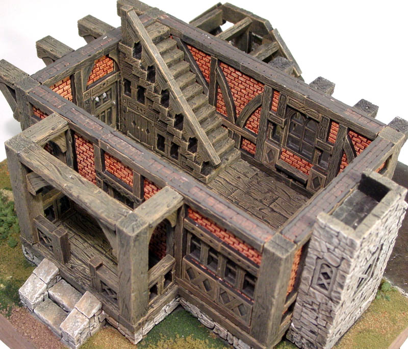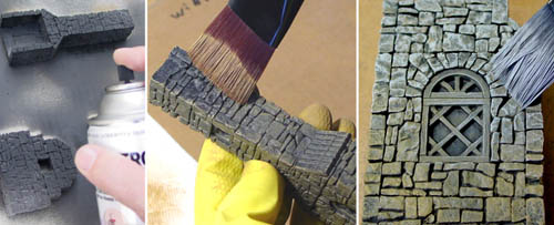 Afterwards, you will dry brush medium brown from the Earth Tone Painting Instructions page. This will be a little heavier dry brushing than with the wooden planks The last coat of paint is castle gray light color from the Castle Gray Painting Instructions page. Dry brush this on lightly. This color will highlight the edges of the stone in gray. It will also gray out the brown a bit. After the brush runs a bit dry, you can go a little more heavily but keep it lighter than when you were applying the brown. |