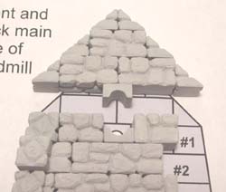 This model is built using mold #76. This mold must be cast 20 times in order to have enough blocks to build the windmill. The windmill is a medium difficulty project. If this is your very first model and you have not built any gaming terrain before then you might want to pick a more simple project. This model is more difficult than a beginner model because of the sloped blocks. You have to be sure that the blocks are facing the correct direction when gluing them together. Getting walls square can be difficult because they slope inward. |